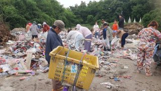 ชาวบ้านแห่รุมเก็บหลังมีคนเอาของเล่นเป็นกระสอบมาทิ้งไว้หลังวัด
