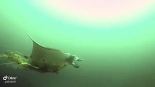 พบแมนต้าเรย์ กระเบนราหูมีเศษอวนติดเป็นยวง เร่งทำการช่วยเหลือ