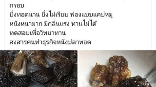 เชฟบังก้อง ทดสอบเอาหนังเหี้ยมาตากแดดและทอด วัดถุดิบราคาไม่ถูก ทอดกรอบไม่ได้ ทอดจนฟูก็ยังไม่กรอบ ยิ่งทอดนาน ยิ่งไม่เรียบ ฟองแบบแคปหมู หนังหนามาก มีกลิ่นแรง ทานไม่ได้ ทดสอบเพื่อวิทยาทาน สงสารคนทำธุรกิจหนังปลาทอด ฟาร์มเ...้ย ในประเทศไทย มีมานานแล้ว ราคาดีกว่าเลี้ยงจระเข้ เลี้ยงง่าย ขายได้ทุกอย่าง ไข่ เนื้อ หนัง หนังนี่ราคาดีมาก 60บาท/ตารางนิ้ว เพราะลายหนังละเอียด ทนทาน และนุ่มกว่าจระเข้ เป็นสินค้าส่.. ดูเพิ่ม
