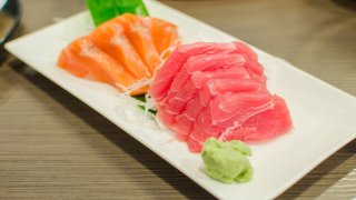 ซาซิมิ ปลาทูน่าและปลาแซลมอน ทักษะการทำอาหาร ที่น่าตื่นตาตื่นใจ Sashimi