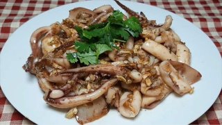 ปลาหมึกทอดกระเทียมพริกไทย (พร้อมวิธีล้างปลาหมึกไม่ให้คาว)