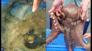 พ่อค้าญี่ปุ่นใจบุญช่วยชีวิตปลาหมึกยักษ์โดยการประมูลปลาหมึกยักษ์จากตลาดส่งให้อควาเรียมดูแล