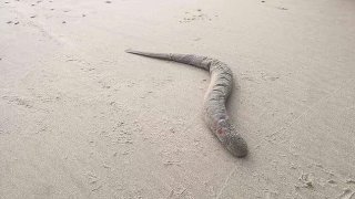 อึ้ง! พบสัตว์ประหลาดบนชายหาดเกยตื้น ลักษณะลำตัวยาวคล้ายปลาไหล ปากกลมมีฟันแหลมคม?