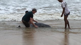 นักท่องเที่ยวและชาวบ้าน แห่ช่วยฝูงโลมาเกยตื้น