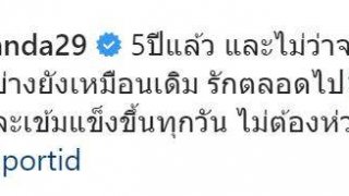 "โบว์ แวนด้า" โพสต์ถึง "ปอ ทฤษฎี" 5 ปีแล้ว ทุกอย่างยังเหมือนเดิม รักตลอดไป