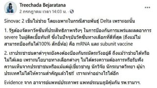 ล่าสุดในเฟซบุ๊กของ ปอย ตรีชฎา ได้มีการอัพเดทรูปข่าว พร้อมระบุว่า.. Sinovac 2 เข็มไม่ช่วย โดยเฉพาะในกรณีสายพันธุ์ Delta เพราะฉะนั้น 1. รัฐต้องจัดหาวัคซีนที่ประสิทธิภาพจริงๆ ในการป้องกันการแพร่และลดอาการ severe ในผู้ติดเชื้อทันที ซึ่งในปัจจุบันวัคซีนทางเลือกที่ดีที่สุด (ถึงแม้ไม่สามารถป้องกันได้100% สักยี่ห้อ) คือ mRNA และ subunit vaccine 2. เราประชาชนตาดำๆจะยังคงต้องป้องกันระมัดระวังอยู่ดี ถึงแม้ว.. ดูเพิ่ม