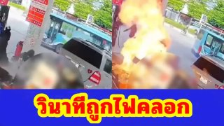 นาทีเป็นตาย! เบนซ์ถอยพลาด อัดหัวจ่ายน้ำมัน ไฟลุกท่วมทั้งปั๊ม