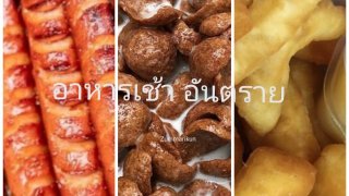 ใครที่ชอบรับประทาน ต้องระวัง อาหารเช้า ที่ดูเหมือนจะเป็นเมนูเพิ่มพลังงาน แต่เดี๋ยวก่อน อันตรายมาก!! เช้าๆ ก็ต้องปาท่องโก๋ นมข้นหวาน อร่อย ฟินยามเช้า เมนูที่หลายคนไม่พลาด แต่แป๋งทอด ในน้ำมันผ่านความร้อน ไขมันสูงมากนะ หากใครไม่อยากแก่ เลี่ยงนะคะกินแล้วแก่เร็ว เมนูอเมริกันเบรคฟัส ไส้กรอก เบคอน ขนมปังปิ้ง เมนูอาหารเช้ายอดฮิตคนทำงาน มีสารตกค้างเยอะมาก สารบอแรกซ์ ที่มีในไส้กรอก ซีเรียล เป็นอาหารที่ท.. ดูเพิ่ม