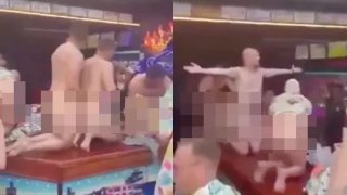 คนเมา 8 คน แก้ผ้าขึ้นไปบนโต๊ะ ก่อนเอาจู๋แตะก้น ทำตะขาบมนุษย์