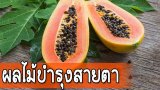 5 ผลไม้ที่มีสารช่วยบำรุงสายตา 1. มะละกอ อุดมไปด้วย วิตามินเอ บี1 บี2 แคลเซียม เบต้าแคโรทีน และสารต้านอนุมูลอิสระ 2. ผลไม้ตระกูลส้ม อาทิ เลมอน ส้มโอ เกรปฟรุต ทำหน้าที่เป็นสารต้านอนุมูลอิสระ ช่วยปกป้องแก้วตาจากต้อกระจก 3. เสวรส มีวิตามินเอสูงมาก ทำให้การมองเห็นชัดเจน นอกจากนั้นยังพบว่ามีวิตามินซีมากกว่ามะนาว จึงช่วยสร้างภูมิคุ้มกันโรคได้ 4. แอปปริคอท มีวิตามินเอ วิตามินซี และโฟแทสเซียม ตัวช่วยชะลอ.. ดูเพิ่ม