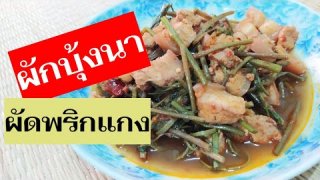 ผักบุ้งนาผัดพริกแกงแดงใส่หมูสามชั้น ทำกินง่ายๆอร่อยด้วย