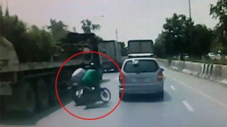 ตามล่าหนุ่มเสื้อเขียว เฉี่ยวชนรถล้มแล้วหลบหนี คู่กรณีถูกรถพ่วงทับดับ (คลิป)