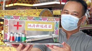 ร้านขายเครื่องกระดาษในเมือง "ยะโฮร์บะฮ์รู" ประเทศมาเลเซีย ได้ประดิษฐ์ชุดวัคซีนโควิด (Hell Covid-19 Vaccine) ที่ทำขึ้นมาจากกระดาษหลากหลายสี เพื่อให้เผาให้กับบรรพบุรุษที่ล่วงลับไปแล้ว ในวันสารทจีน... เจ้าของร้าน "เรย์มอนด์ ชี" กล่าวว่า "ผมมักคิดที่จะประดิษฐ์ ของที่จำเป็นจริงๆ เพื่อให้กับผู้ที่ล่วงลับไปแล้ว ซึ่งแสดงถึงความอาลัยจากหัวใจ ของผู้ที่สูญเสียคนที่รักไป โดยไม่มีโอกาสที่จะฉีดวัคซีนโควิด" "เร.. ดูเพิ่ม