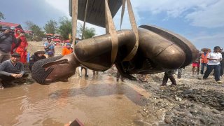 ถือเป็นการค้นพบที่ยิ่งใหญ่ของประเทศลาว ที่เมืองต้นผึ้ง แขวงบ่อแก้ว ตรงกันข้าม อ.เชียงแสน จ.เชียงราย เมื่อวันที่ 6 พ.ค. 2567 ได้มีการขุดพบฐานและพระพุทธรูปสำริดขนาดใหญ่ปางมารวิชัย ฝังอยู่ในทราย กลางแม่น้ำโขง คาดมีอายุไม่ต่ำกว่า 500 - 600 ปี สันนิษฐานว่าน่าจะเป็นพระประธานของวัดโบราณริมแม่น้ำโขงที่ถูกพัดหายไป พระพุทธรูปองค์นี้ยังสมบูรณ์อยู่ มีหน้าตักกว้าง 1.2-2 เมตร สูงประมาณ 3 เมตร สภาพคว่ำหน้า นอกจ.. ดูเพิ่ม