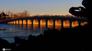 ทิวทัศน์ของพระราชวังฤดูร้อนในกรุงปักกิ่งตอนพระอาทิตย์ตก