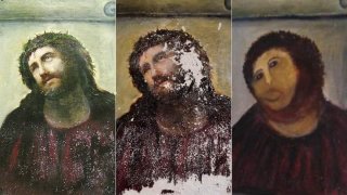 การบูรณะภาพวาดที่แย่ที่สุด! ภาพวาดพระเยซูสวมมงกุฎหนาม ฯลฯ บนผนังของโบสถ์