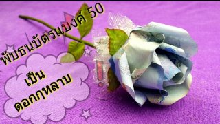 พับธนบัตรแบงค์50 เป็นดอกกุหลาบสวยๆ ง่ายมาก