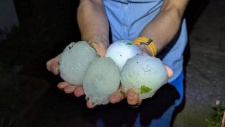 การ์ดา เวโรนา อิตาลี - ภาพที่กำลังถูกแชร์ในโซเชียล ลูกเห็บทำลาย กระจกรถยนต์ บ้าน หลังคาบ้าน แผงโซลาร์เซลล์ เสียหาย ลูกใหญ่มากๆ นี่ขนาดตกใส่บ้านเรือนยังพังเสียหายได้ขนาดนี้ ถ้าตกใส่หัวคนอาจถึงตายได้เลยนะเนี่ย ภาพ :Tornado Italia ดูเพิ่ม
