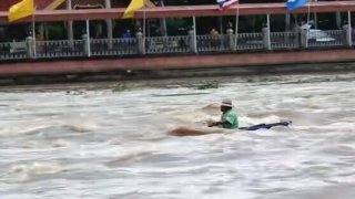 ล้นระทึก! คุณลุงพายเรือฝ่ากระน้ำเชี่ยวกราด คนบนฝั่งยืนลุ้นจนตัวโก่ง