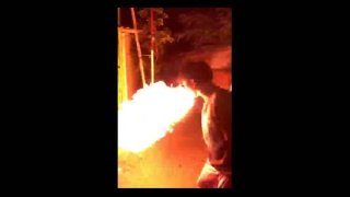 สื่อนอกรายงานว่า "ชายหนุ่มรายหนึ่ง ที่อาศัยอยู่ในจาการ์ตา ประเทศอินโดนีเซีย ได้ประสบอุบัติเหตุที่ต้องจดจำไปทั้งชีวิต เพียงเพราะเขาต้องการลองพ่นไฟ แบบคนในคณะละครสัตว์" และ "จากในคลิปจะเห็นได้ว่า เขาอมเหล้าไว้ในปาก ก่อนที่จะพ่นมันใส่ไฟแช็ก พรึ๊บ!! แล้วไฟก็ติดปาก ไหม้หน้า ก่อนที่เขาจะวิ่ง" แต่... "โชคยังดีที่เข้าไม่ได้รับบาดเจ็บรุนแรง..." *คลิปอยู่ในลิงก์เว็บข้างล่าง* ดูเพิ่ม