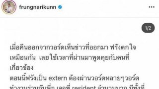 ดราม่าร้อนฉ่ากันข้ามคืนเลยทีเดียว จากประเด็นที่สาวรายหนึ่ง ที่ออกมาแฉในไลน์กลุ่มที่มีกว่า 3,000 คน เกี่ยวกับเรื่องราวความรักยุ่งกับแฟนคนอื่น และมีการโยงถึงดาราสาวดีกรีคุณหมอ "ฟรัง นรีกุล" จนทำให้ #ฟรังนรีกุล ทยานติดเทรน์อันดับ1ไทยข้ามคืนกันเลยทีเดียว ล่าสุด ฟรัง นรีกุล ได้ออกมาเคลื่อนไหวครั้งแรก หลังเกิดประเด็นร้อน โดยเธอขอชี้แจงความจริงว่า เมื่อคืนออกจากวอร์ดเห็นข่าวที่ออกมา ฟรังตกใจเหมือนกัน เล.. ดูเพิ่ม