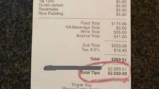 พนักงานเฮ ได้รับทิป 2,020 เหรียญ