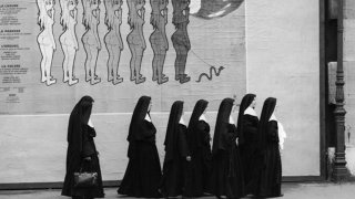 1. กลุ่มแม่ชีสวมชุดสีดำเดินผ่านถนน ซึ่งสร้างความแตกต่างอย่างมากกับสตรีเปลือยกายด้านบน 2. ภาพถ่ายเหล่านี้ถ่ายโดยช่างภาพและกวีชาวฝรั่งเศส Rene Maltet 3. หลายปีที่ผ่านมา ผลงานของ Rene Maltet ได้รับการตีพิมพ์ในนิตยสารหลายฉบับและจัดแสดงในนิทรรศการต่างๆ ทั่วโลก ดูเพิ่ม