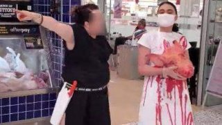คนขายเนื้อเผชิญหน้า กับ นักเคลื่อนไหวมังสวิรัติ