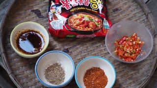 มาม่าอบชีส ส่วนผสม 1.มาม่าแบบแห้งรสฮอตโคเรียน 2.ไข่ไก่ 2 ฟอง 3.น้ำตาล 1 ช้อนชา 4.พริกไทยป่น ครึ่งช้อนชา 5.ซีอิ้วขาว 1 ช้อนชา 6.ซอสหอย 1 ช้อนชา 7.น้ำสะอาด ครึ่งถ้วย 8.ชีส 9.พริกปาปริก้าและออริกาโน่เล็กน้อย วิธีการทำ 1.ตอกไข่ไก่ใส่ถ้วย ปรุงรสด้วยน้ำตาล พริกไทยป่น ซีอิ้วขาว ซอสหอย น้ำ ตีให้เข้ากัน ปิดด้วยฟลอยเจาะรู เข้าไมโครเวฟ 3 นาที 2.ตั้งน้ำเอามาม่าต้ม 2 นาที ตักใส่ถ้วยใส่เครื่องปรุงมาม่าคลุกให้เข.. ดูเพิ่ม