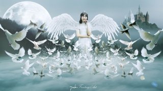 สอนแต่งภาพด้วย Photoshop : Princess of dove: Dispersion effect: Mind BNK48 EP.11: Photoshop Fantasy Tutorial (7ack Fantasy Art)