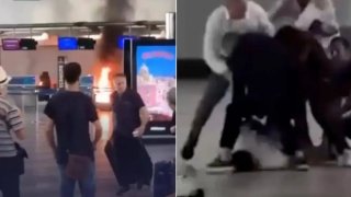 หนุ่มวัยรุ่นก่อเหตุวุ่นวายในสนามบิน ด้วยการจุดไฟเผาและใช้ค้อนทุบเคาน์เตอร์