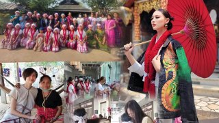 กลุ่มชาวชาติพันธุ์ ปะกากะญอ เดินทางมาร่วมให้กำลังใจ เฌอเอม ผู้เข้าประกวดมิสแกรนด์ลำพูน