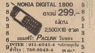 ราคามือถือ(ปี 2539)และค่าบริการสมัยก่อนเทียบกับเงินเดือนหรือราคาทองคำ กว่าจะซื้อมือถือได้เครื่องนึงหนักหนาสาหัสทีเดียว แต่ละเดือนยังต้องมีค่าใช้จ่ายอีกเช่นค่าบริการรายเดือนๆละ 500 บาทค่าโทรออก (พื้นที่เดียวกันนาทีละ 3 บาท พื้นที่ติดกันนาทีละ 8 บาท ต่างพื้นที่นาทีละ 12 บาท),ค่ารับหรือส่งข้อความอีกครั้งละ 3 บาท ในภาพมือถือ Nokia Digital 1800 ดาวน์เพียง 299 แต่ผ่อนเดือนละ 2,500 นาน 18 เดือน= 45,299 .. ดูเพิ่ม