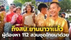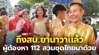 มาถึงแล้ว!! ผู้ต้องหา ม.112 และเพื่อน ๆ ใส่ชุดไทย มา สน.ยานนาวา