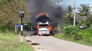 เกิดเหตุรถบรรทุกมะม่วงระเบิดไฟลุกท่วม