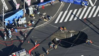 คนขับรถบรรทุก ยังติดอยู่ในหลุมยุบที่ญี่ปุ่น นานถึง 24 ชั่วโมง