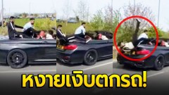 แก๊งรถสปอร์ตเปิดประทุน เร่งเครื่องโชว์ออฟ เพื่อนหงายเงิบตีลังกาตกรถ