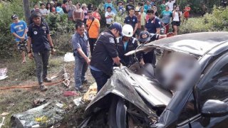 สลด! ครูสาวขับเก๋งประสานงากระบะ ตายยกคันคาที่ 3 ศพ
