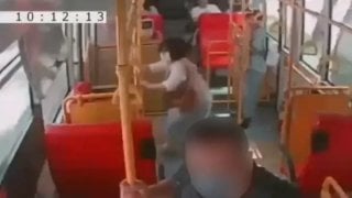 ชายแก่ข่มขู่ทำร้ายผู้หญิงบนรถเมล์ ก่อนเธอจะเตะเขาลงมาจากรถ
