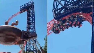 เกิดเหตุรถไฟเหาะในอเมริกา ค้างแบบห้อยหัวนาน 3 ชม.