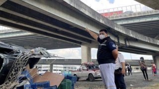 รอดปาฏิหาริย์! รถกระบะบรรทุกลำไยพังยับ หลังเสียหลักตกทางด่วนสูงกว่า 10 เมตร