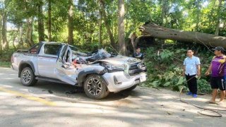 ใครเห็นก็ว่าตาย!! ต้นไม้ใหญ่ล้มใส่เต็ม ๆ แต่รอดเหลื่อเชื่อ
