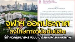 จุฬาฯ ออกประกาศ ลงโทษทางวินัยกับนิสิตที่ ทำผิดกฎหมาย-ระเบียบ ย้ำไม่เคยลิดรอนเสรีภาพ