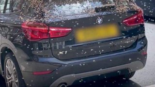 ฝูงผึ้งนับพันตัว บินไปตอมรถ BMW ในขณะที่คนเลี้ยงผึ้งพยายามนำมันกลับเข้ารัง