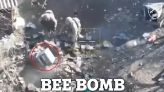 คลิปที่กำลังเป็นไวรัลในโลกตอนนี้ คือ คลิปที่ถูกถ่ายได้โดยโดรนลำหนึ่ง ซึ่งแสดงให้เห็นว่า ทหารยูเครน 2 นาย หยิบรังผึ้งในกล่องไม้ แล้วโยนลงไปในช่องๆหนึ่ง ซึ่งเป็นช่องที่เชื่อมต่อกับห้องใต้ดิน ซึ่งเป็นที่ซ่อนของทหารรัสเซีย... กองกำลังยูเครนประสบความสำเร็จ จากการใช้วิธีนี้มากมาย หลังจากระเบิดมือหมดคลัง เนื่องจากว่าผึ้งยูเครน ทำหน้าที่ของมันได้ดี ในการต่อต้านทหารรัสเซีย... โดยกองกำลังยูเครน ได้เอากล่อง.. ดูเพิ่ม