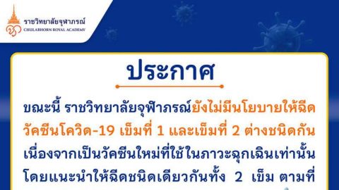 ราชวิทยาลัยจุฬาฯประกาศ "ไม่มีนโยบาย ฉีดวัคซีนสลับชนิด"