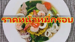 ราดหน้าเส้นใหญ่ทอดกรอบหมูหมัก