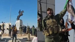 กลุ่มต่อต้านโค่นรูปปั้นพี่ชายผู้นำซีเรียลงจากหลังม้าแล้ว