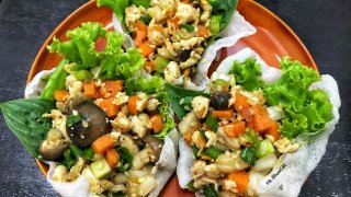 วันนี้นำเสนอ เมี่ยงไก่เหยียบเมฆ Spicy chicken salad with fried spring roll เมี่ยงไก่สูตรเด็ด เผ็ดจ้วด เปรี้ยวจี้ด มันงา หวานเห็ด หอมกลิ่นมะนาวและงาคั่ว ห่อด้วยแผ่นปอเปี๊ยะทอดกรอบๆ พร้อมผักกาดหอมและใบโหระพา เป็นเมนูง่ายๆ อร่อยและดีต่อสุขภาพด้วยค่ะ อยากให้เพื่อนๆลองทำทานดูนะคะ วัตถุดิบและเครื่องปรุงมีดังนี้ค่ะ 1. อกไก่ 200 กรัม 2. แครอทหั่นเต๋าเล็ก 100 กรัม 3. เห็ดชิเมชิหรือเห็ดหลินดำ 150 กรัม 4. .. ดูเพิ่ม