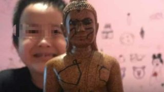 ลูกชายมือดีใช้ปากกาเขียนพระพุทธรูป ชาวเน็ตแซว บอกคล้ายลุงตู่!!
